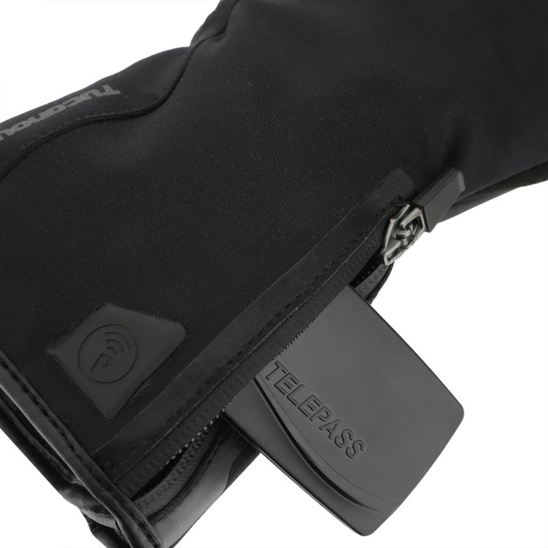 - Bolsillo en puño para control remoto o soporte para dispositivo para el pago del peaje de la autopista con cremallera Water Resistant en el guante izquierda